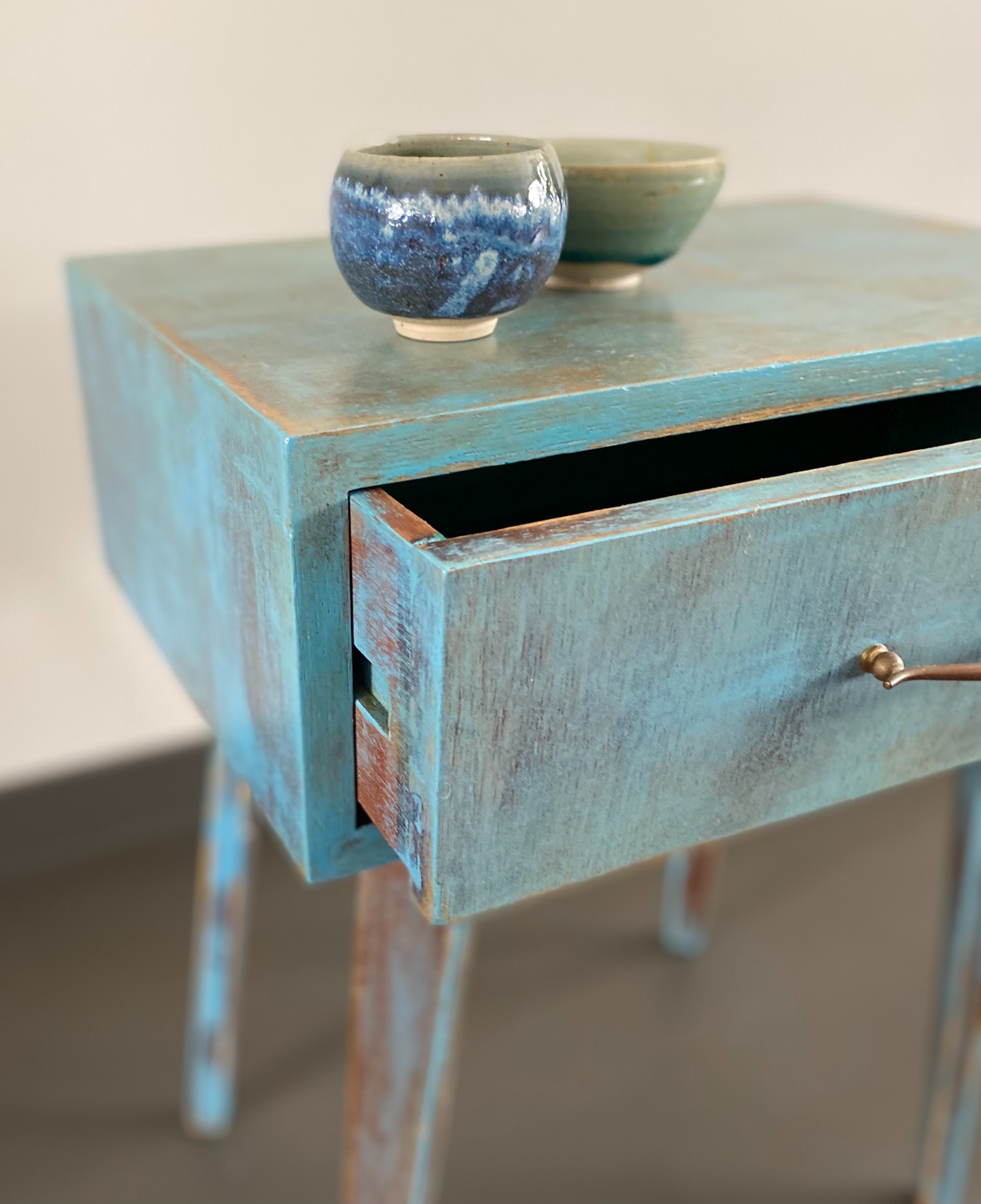 Alle meubels behandel ik eerst tegen houtworm en vervolgens kijk ik wat ik ervan kan maken. Ik plamuur niet alles glad want ik vind het mooi als je kunt zien dat het een gebruikt meubel is. Als het mooi hout is, laat ik dit in haar natuurlijke kleur maar behandel ik het wel met transparante, niet glimmende lak zodat het beschermd is en daardoor ook minder verkleurt. Daarnaast geef ik dan vaak wat kleuraccenten en meestal geef ik bij kastjes de binnenkant een andere kleur.